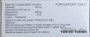 每片含量:他达拉非(希爱力) 20mg +达泊西汀(希爱力)60mg